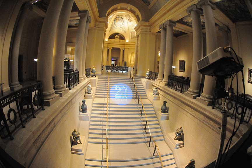The Koch Gallery has a lot of art and not a lot of columns. Each art piece has multiple lights already, which we wouldn’t want to outshine.