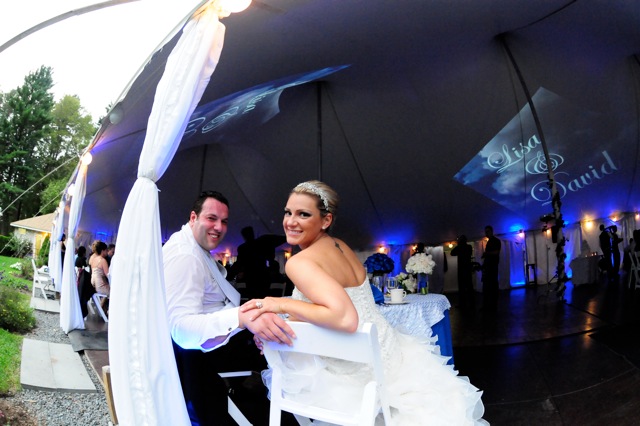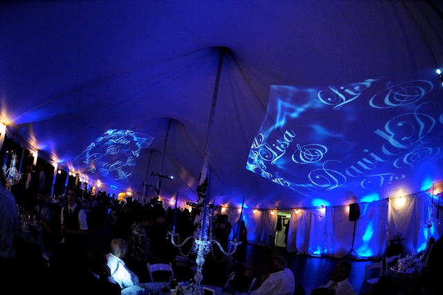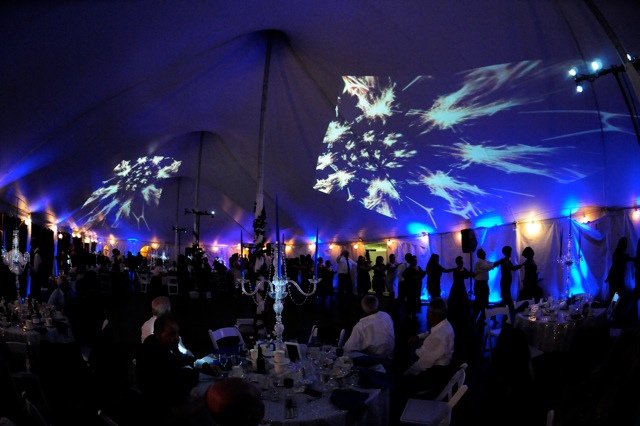 Boston Event Lighting at the Victorian Tent at Lake Pearl in Wrentham Mass. Lisa and David are a terrific couple and we enjoyed the night. We provided pinspots on the crystal chandelier centerpieces, our unique proprietary brand of uplighting and vj projections.
