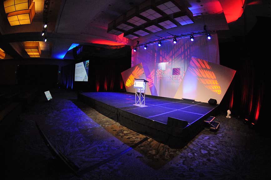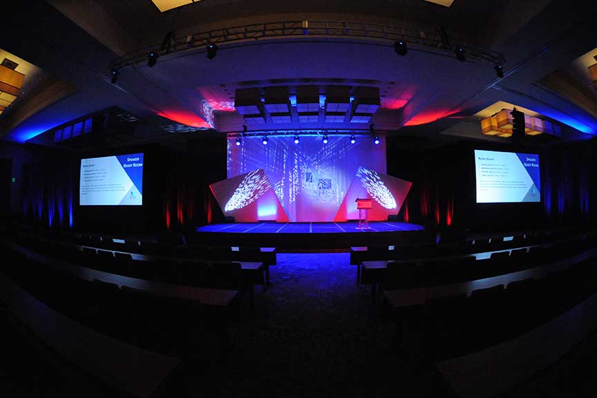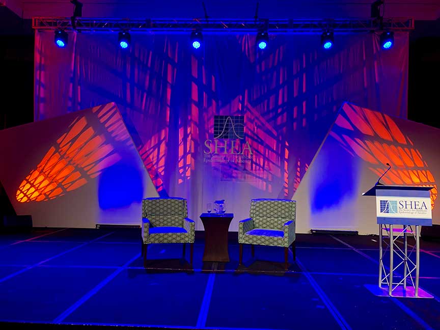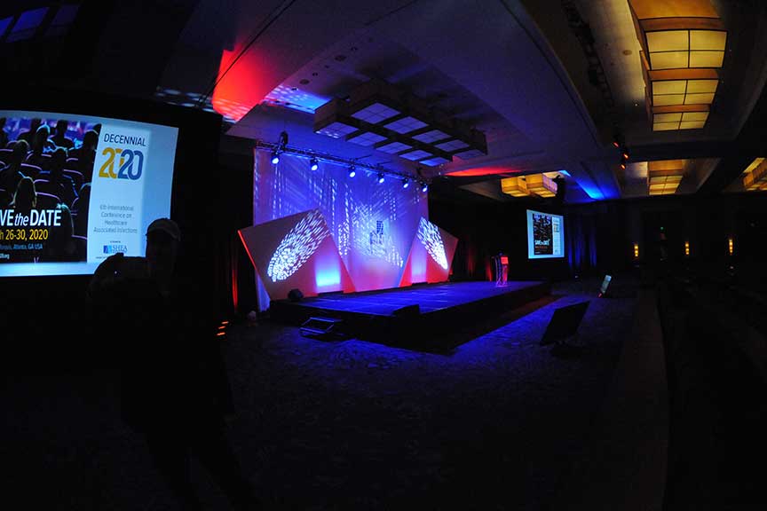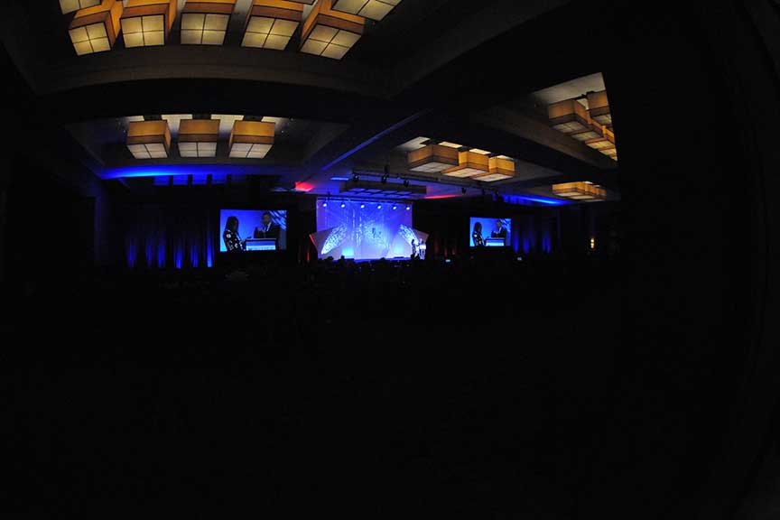 Second look, with white gobo projection instead of orange.The view from the AV booth The design got some attention on Twitter.